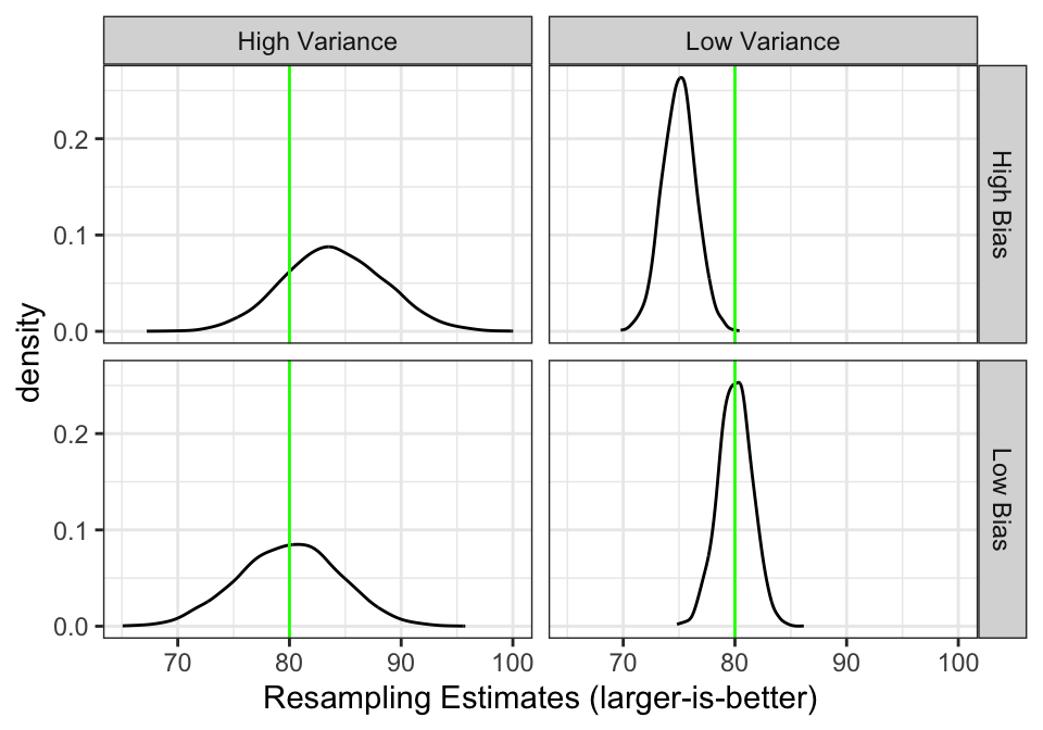 One final point about the interpretation of resampling results is that, by choosing the best settings based on the results and representing the model’s performance using these values, there is the risk of optimization bias. Depending on the problem, this bias might overestimate the model’s true performance. There are nested resampling procedures that can be used to mitigate these biases. See Boulesteix and Strobl (2009) for more information.